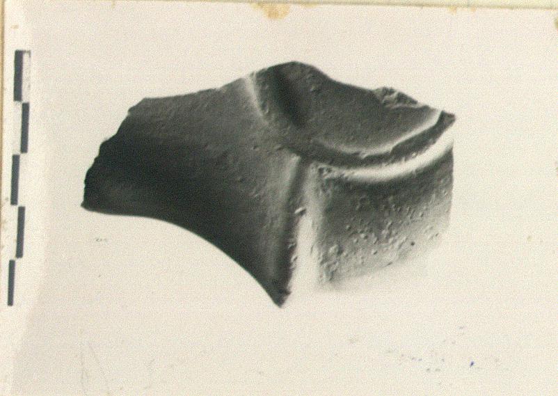 | Description: | Fragment from side, bottom and rim, with part of nozzle. Ring foot; moulded rib on side, between wall and nozzle. Trace of floral decoration in relief preserved on rim. Hard red clay and smooth red surface. Type ca. XXXI of Corinth collection. | |