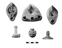 Jewelled Greek cross on discus. Small nodules and three punched circles on rim on either side.