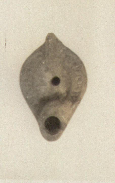 | Description: | On rim, large dots. On discus, cross, with central filling hole. Handle small, solid, double grooved. On bottom, double almond-shaped groove with four impressed circles or dots; within, a large palm branch. Unglazed. Light red clay; blackening from use extends across lower part of discus and rim. Type XXVIII of Corinth collection. | |