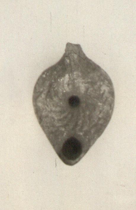 | Description: | On rim, herringbone. On discus, whirling rosette. Handle solid, double grooved. Nozzle set off from rim by two diagonal lines; no air hole. On bottom, double almond-shaped grooves, enclosing palm branch. Coarse yellowish clay with light red surface; damaged at handle and back. Type XXVIII of Corinth collection. | |