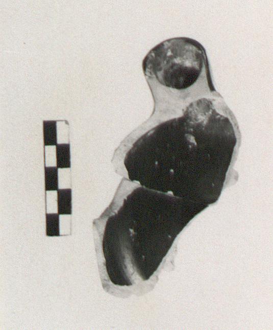 | Description: | Half of base and one nozzle preserved in two joining fragments. Very snub-nosed nozzle. Central tube. Raised foot. Two grooves on lower body. Reserved top of nozzle and outside edge of foot. Good black glaze. Cf. Agora IV, no. 223, type 23B. | |