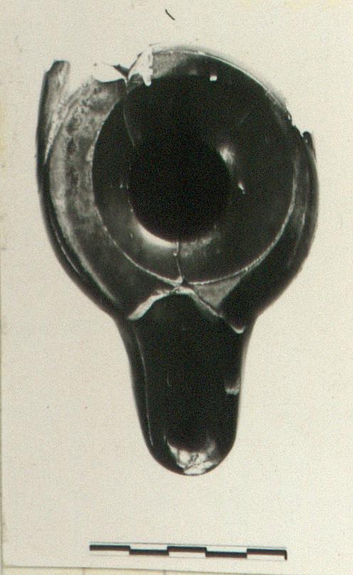 | Description: | Mended from five fragments. Complete except for handle and chips from body and nozzle. Simple raised base, flat and reserved. Plain, flat rim, sloping toward filling hole. Attachment for horizontal band handle, long nozzle, flat above. Glaze bluish-black to yellowish-brown. Type 23C of Agora collection. | |