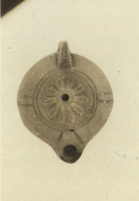 On bottom, circular groove, enclosing five small circles arranged in cross.