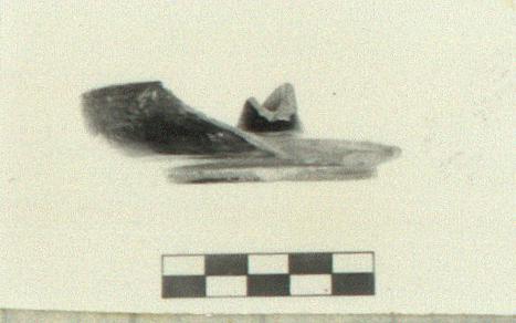 | Description: | Part of wall and base with lower part of central tube. Raised base with reserved band around outer edge. Central tube. Rounded lower body meets top at angle. Outer edge of foot and lower wall reserved. Shiny black to dull green glaze. Type 23B of Agora collection. Cf. Agora IV, no. 223. | |
