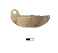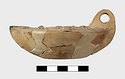 Nozzle, together with part of the right side of the rim, and nearly all of the body. At the left, a bit of the side preserves the complete height of the lamp.