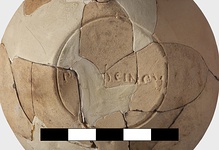 ADDENDA Fragment of bottom found during mending; within single incised groove an incised signature: "ΡO[Υ]ΦΕΙΝΟΥ". Restored in plaster.