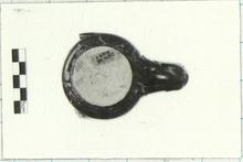 | Description: | Mended from many fragments; complete except for horizontal strap handle. Low disk foot, slightly concave and reserved underneath; vertical wall, broad, inward-sloping in rim; long nozzle. Good shiny black glaze. Orange-buff clay. Cf. Agora IV, no. 228, Type 23C. Early 4th. century B.C. | |