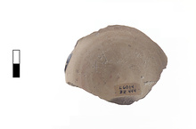 Description:   Single fragment preserving about two-third of concave bottom with portion of lower wall; trace of handle attachment.
