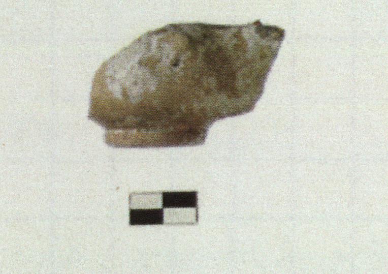 | Description: | Single fragment preserving entire base and most of front. Missing back, top, and end of nozzle. Stump of pierced lug handle. Very encrusted. Black glaze inside and in streaks on outside of spout. Bulbous rounded shape. Grooved rim. Flat spout. Concave disk foot. Pale buff fabric. | |