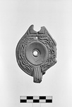 | Description: | Base is broken. Wave pattern on rim. Discus plain, with central filling hole. Handle solid, triple grooved. Nozzle without stamped circles; instead double grooves. Unglazed. Red clay. Type XXVIII of Corinth collection. ADDENDA For nozzle cf. Corinth IV, ii, p. 105, fig. 49, no. 7. | |
