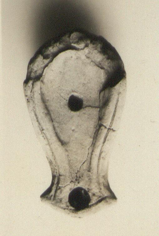 | Description: | Discus carries out unbroken to wick hole. Fluked nozzle. Walls straight. No trace of handle but possible place of attachment has crumbled. On reverse, within single groove, made by mould. Unglazed. Crumbly red clay. Type XXI of Corinth collection. | |