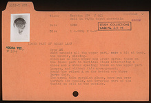 | Description: | All the upper part, save a bit at back, the handle missing. Mended. Globules on both upper and lower parts; those on the lower part in vertical lines alternating a close and a wider spacing; those on the upper part larger, and without this arrangement. Round the raised "A" on the bottom are three large dots. The usual thin purplish glaze, here run over through the nozzle, and covering part of the inside as well as the outside. Type XX of Corinth collection. | |