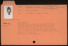 | Description: | The two halves of the lamp very carelessly joined, so that the upper part of the handle, a solid knob with two grooves, hardly connects with the lower part, which is smeard, but shows remains of one groove. On rim, herringbone. Plain discus. On reverse, palm branch within two almond-shaped grooves. Unglazed. Pinkish-buff clay. Type XXVIII of Corinth collection. | |