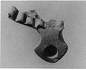 | Description: | Nozzle fragment from large lamp. Broad ridges on the preserved fragment of the rim. Pale buff slip. Fairly fine pinkish-buff clay. Related to types XXI-XXII of Corinth collection. | |