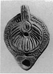 | Description: | On rim, herringbone. On discus, shell pattern. Handle, solid, triple grooved. Nozzle without stamped circles. On bottom, double concentric grooves, signed "A". Red glaze. Red clay. Type XXVIII of Corinth collection. ADDENDA For nozzle cf. Corinth IV, ii, p. 105. fig. 49, no. 7. | |