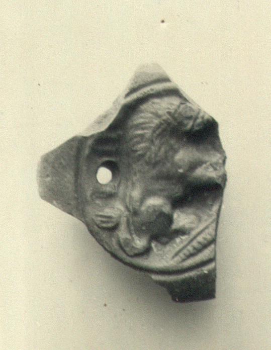 | Description: | Bits of the rim and most of the discus are preserved. Plain rim. On discus, braced on his forepaws is a lion with upright tail. The ground line is indicated by a line and cross bars. Around the design a groove. Thin red wash inside and out. Orange-red clay. Type XXVIII of Corinth collection. | |