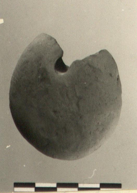 | Description: | Small fragment missing. Ovoid. Buff clay. | |