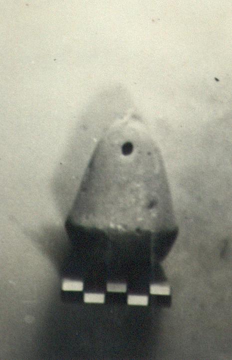| Description: | Conical. Drawn in toward the bottom. Its bottom was punctured, perhaps to facilitate firing. Unglazed. Slightly gritty, buff clay. | |