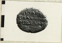 | Description: | Intact. Obverse: inscribed. It has three lines of text made of an ovoid seal. Letters less distinct than those of sealings MC 1164 and MC 1165. Reverse: parallel striations (traces of the object-wood (?) against which it was affixed). Similar to MC 1164 and from seal 1-type II B. Cf. MC 1187 for the text of the inscription. <graphic> | |