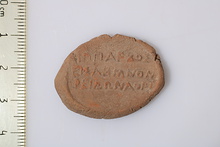 | Description: | Intact. Obverse: inscribed. It has three lines of text made of an ovoid seal. Reverse: parallel striations (traces of the object-wood (?) against which it was affixed). Pink clay. Similar to MC 1164 and from seal 1-type II B. Cf. MC 1187 for the text of the inscription. <graphic> | |