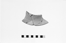 Concave wall. On the outer side, at the top, the letter "Δ" inscribed before firing. Light buff slip.