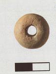 | Description: | Surface abraded on one side close to the hole, otherwise in good condition. Circular bead slightly flattened at top and bottom. Smooth surface, polished by use(?). Pierced through, small groove on one side (wear made by thread?). Pinkish-buff fabric with some darker discoloration. | |