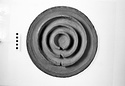 | Description: | The outer ridge is broken away. Flat bottomed round disk. On upper side, four concentric circular ridges, rising ca. 0.035 from the floor of the disk. Through the inner ridges doors are cut, forming a continuous straight passage from inside to outer ring. The outer ridge had no opening. Decoration of groups of parallel incision, as if made with a fork, on the sides of the ridges. Gritty micaceous red clay, slipped. | |