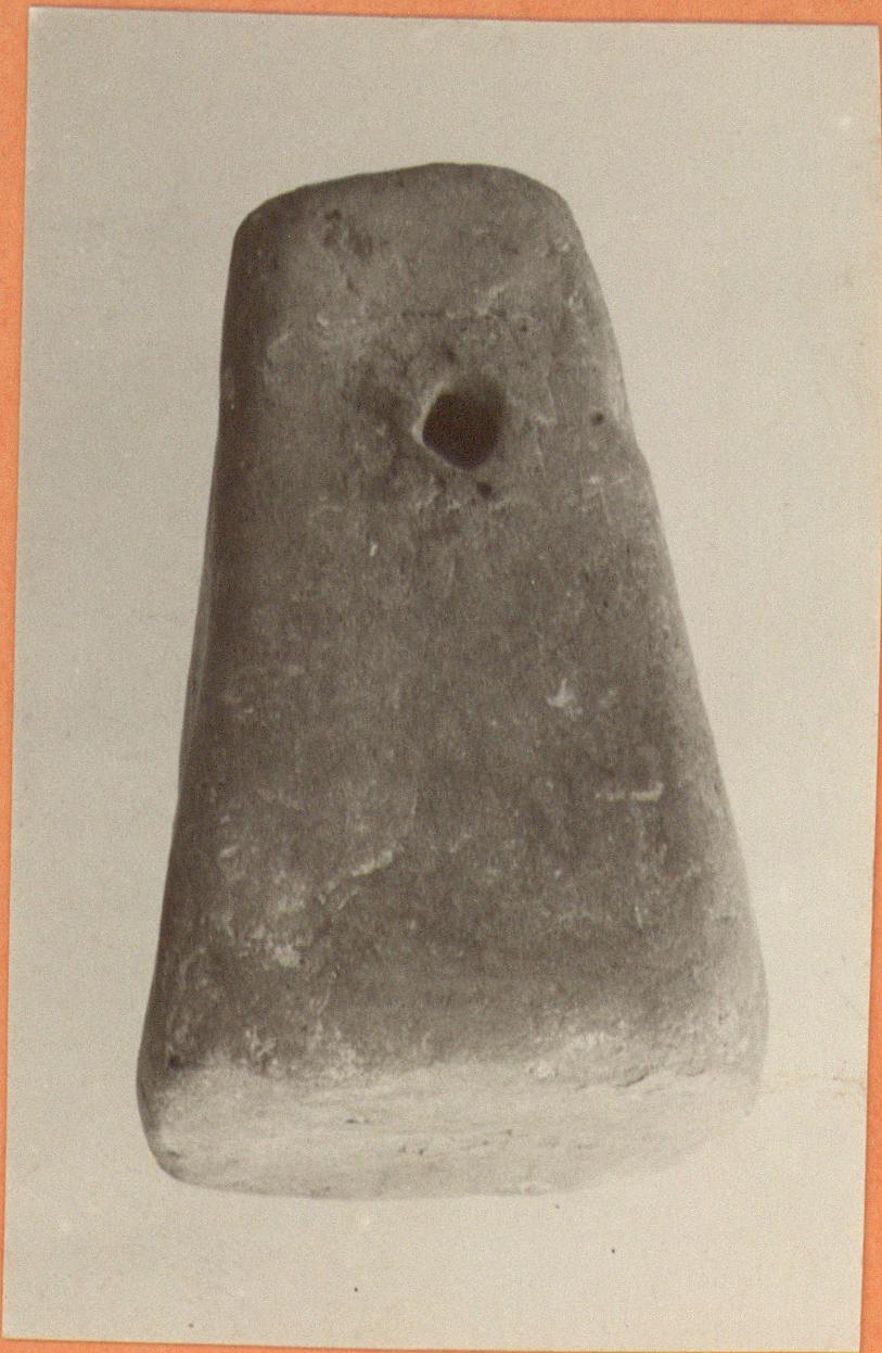 | Description: | Pyramidal. Very flat shape. Pierced near the top. Reddish clay. Proto-attic. | |