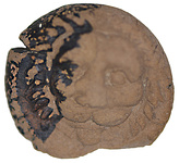 | Description: | Intact except for large chip from one side. A: a lion 's head, facing in relief. Shaggy mane coming down to chin on either side of face. B: plain. Very good modelling. Half of disk dipped in black glaze. Attic clay. | |