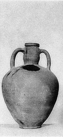 | Description: | Fragment of shoulder missing; otherwise intact. Simulated ring foot; narrow neck bulging in the middle, finished with a small vertical-faced lip; ridged handles. Reddish clay and slip. | |