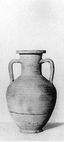 | Description: | Mended from several pieces; fragment of body missing. Ring foot; wide straight neck; projecting lip with vertical edge; "double" handles, from middle of neck to shoulder. Buff clay. Light buff slip. | |