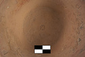 "Samian" clay, soft and highly micaceous. Dull red glaze, much flaked.