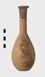 | Description: | Chip of lip missing; otherwise intact. Small flat bottom; elongated globular body; long neck. Thin dark glaze around mouth inside and out. Exterior otherwise unglazed. | |