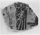 | Description: | Ring foot; flat floor. Draped figure right, between two small altars(?). Tendril in field. Broad incision. Outside, reserved. Glaze bands on interior and exterior of foot; broad band inside around small reserved center, with circle. | |