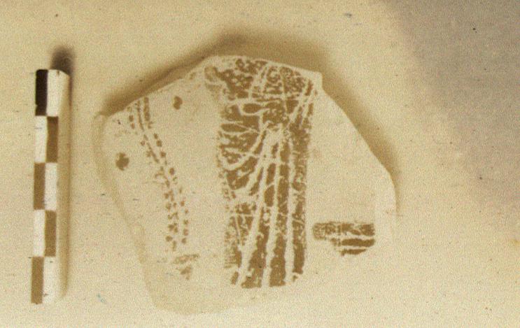 | Description: | Ring foot; flat floor. Draped figure right, between two small altars(?). Tendril in field. Broad incision. Outside, reserved. Glaze bands on interior and exterior of foot; broad band inside around small reserved center, with circle. | |