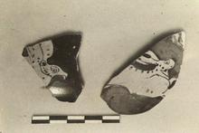 | Description: | Two fragments from the top of a shallow-type askos. a) A bird of prey, right. b) A hare, right. No relief contours. Glaze grayed in part. | |