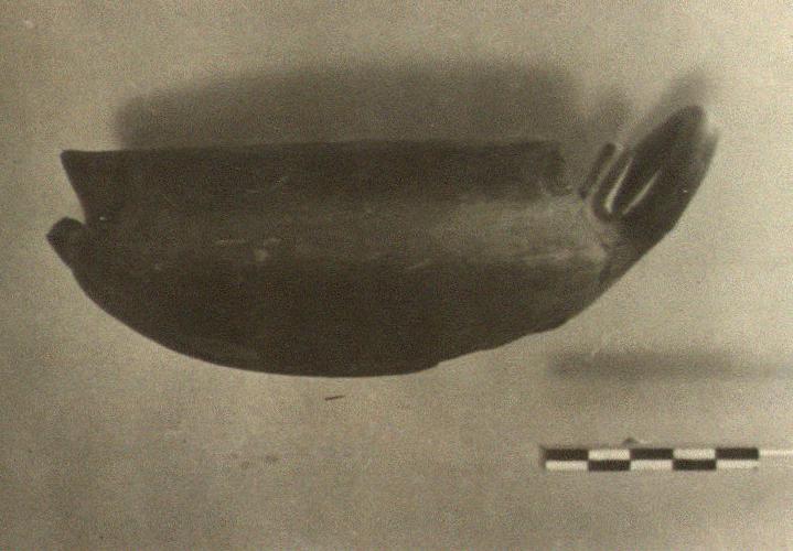 | Description: | Part of rim, floor and one handle missing. Handle restored. High rim; flange inside for lid; horizontal handles on shoulder, rising well above rim. Micaceous russet clay. | |