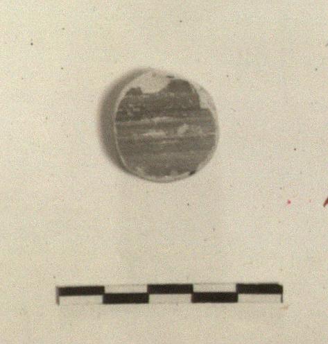 | Description: | Small unpierced disk cut from the side of a large pot; red glazed on the outside. Pinkish-buff clay. | |