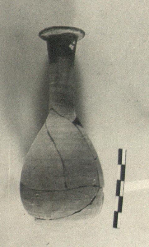 | Description: | Broken; repaired. Bits missing. Thin metallic glaze on neck and lip. | |