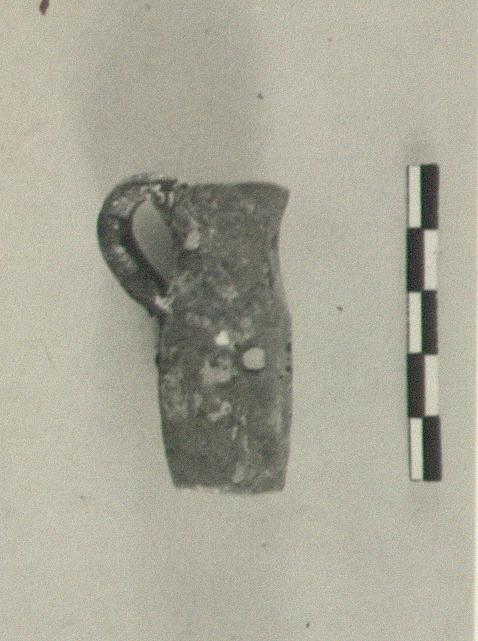 | Description: | Handle and lip broken; repaired; chips missing from one side of lip. Crudely made; only suggestion of wheel is on rough bottom. Red clay with smokey discoloration on surface. Cf. Agora XII, no. 2002. | |