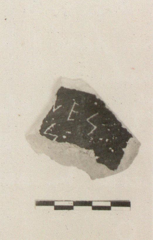 Description:   From the wall of a partly glazed krater, black glazed on inside and in a horizontal band on outside.