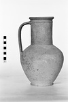 | Description: | Chip of lip and neck missing. Low flat base; squat ovoid body; long straight neck with round mouth and thickened lip. Band handle from shoulder to ridge just below lip. Light grayish-buff clay with white bits. | |