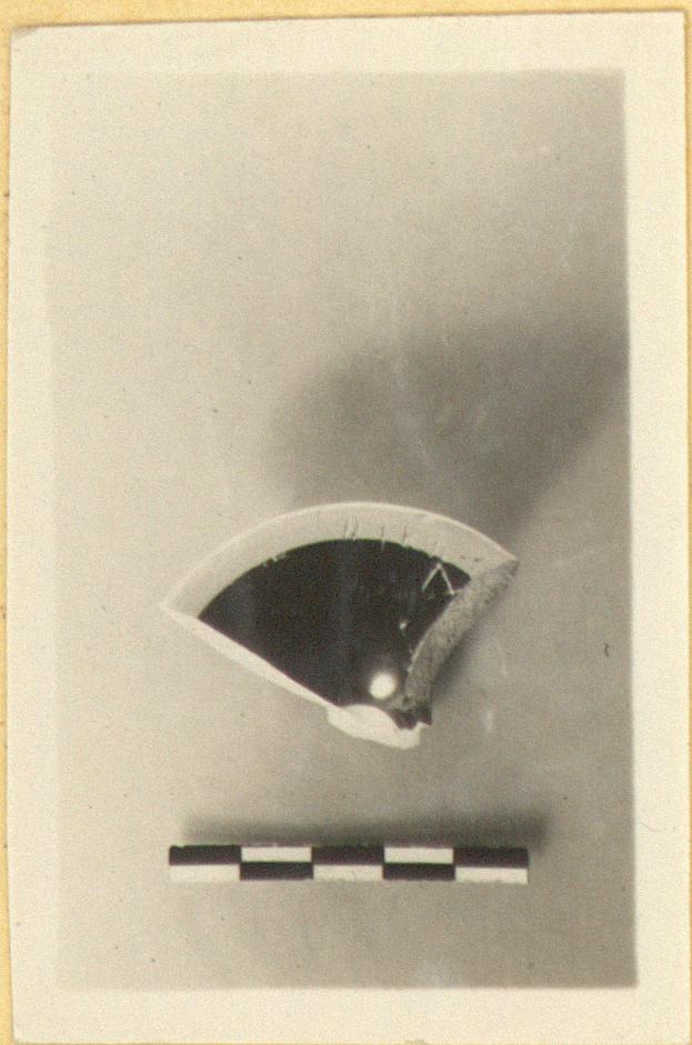 | Description: | About one-quarter of base and a bit of stem preserved. Face of foot (concave) and resting surface reserved. Scratched line around top of foot. Incised beneath: <graphic> Two lines? | |