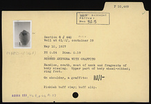| Description: | Handles, mouth, most of neck and fragments of body missing. Upper part of body wheel-ribbed; ring foot. On shoulder, a graffito: <graphic> Pinkish-buff clay. Buff slip. | |