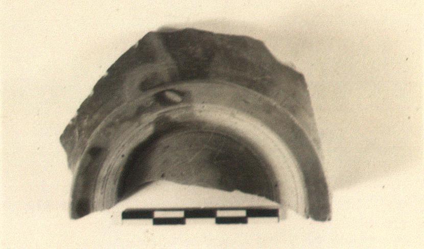| Description: | The bottom of a late Hellenistic plate on ring foot. Incised underneath: <graphic> Smeary black glaze. | |
