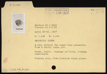 | Description: | A chip without the inner face preserved, from a fairly large pot. Horse, right; zigzags in field, lozenge underneath. Pinkish clay; firm brownish-black glaze. | |