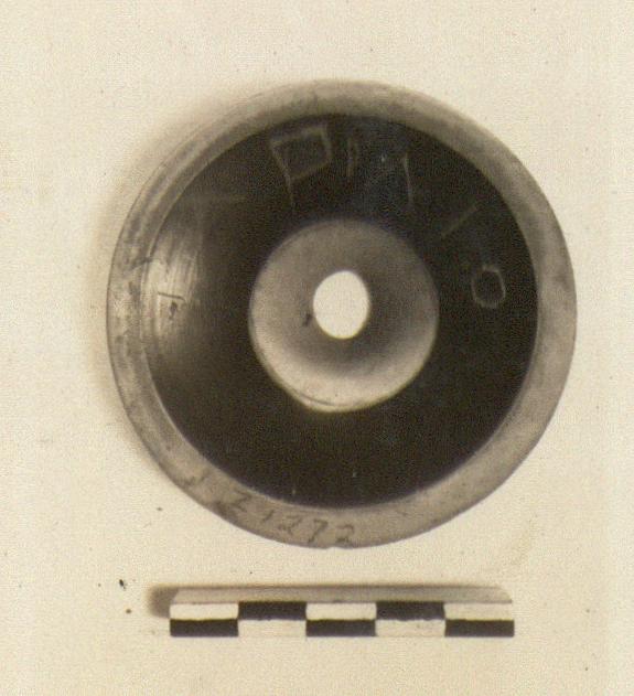 | Description: | Base of cup. Reserved around concave edge of foot, resting surface, and in a scraped line on top of foot. Good black glaze. Incised on underside: <graphic> | |