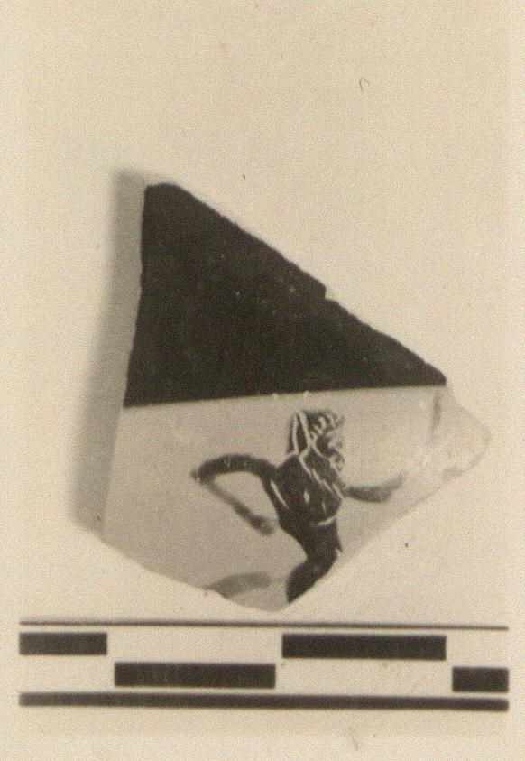 | Description: | From the rim of a band-cup. In the handle zone, satyr dancing to right. Purple tail. | |