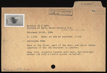 | Description: | Most of the floor, part of the wall, and about three-quarters of the rim restored in plaster. Ring foot, slightly concave side wall, and straight keeled rim with a double spiral in relief. Western Sigillata. | |