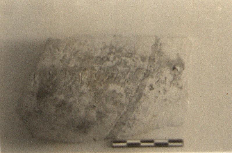 | Description: | From the shoulder of a coarse amphora, banded outside, and with glaze running down the inside. Incised outside: <graphic> | |